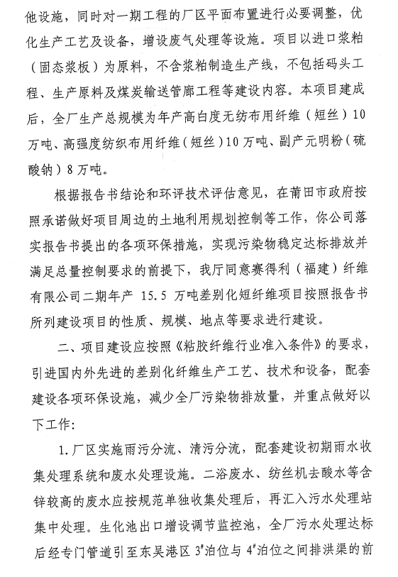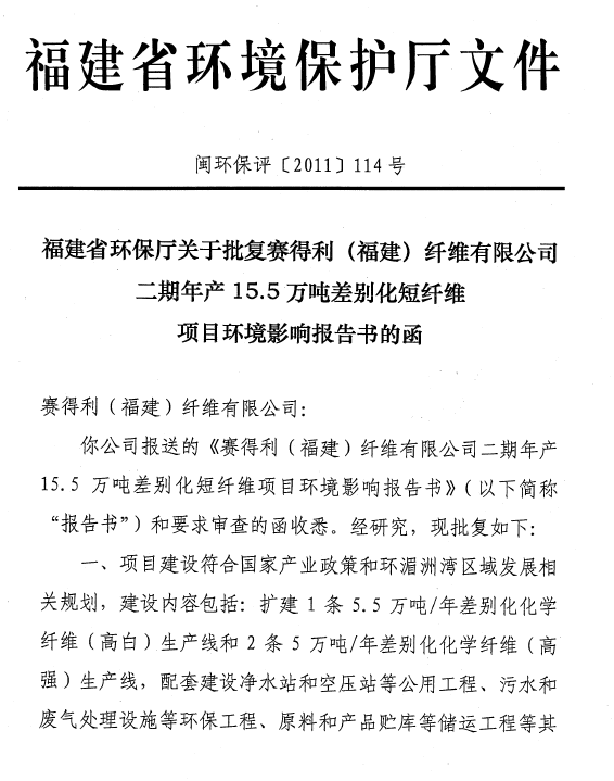 賽得利(福建)15.5萬環評批文