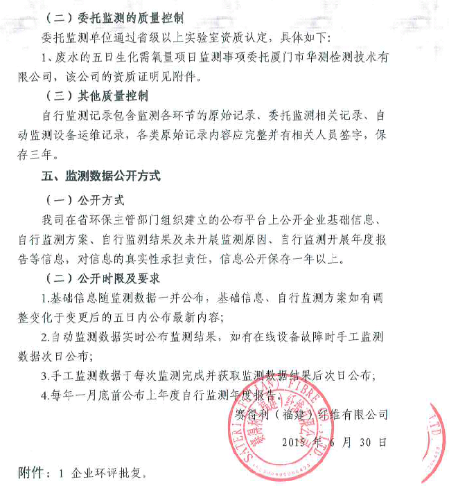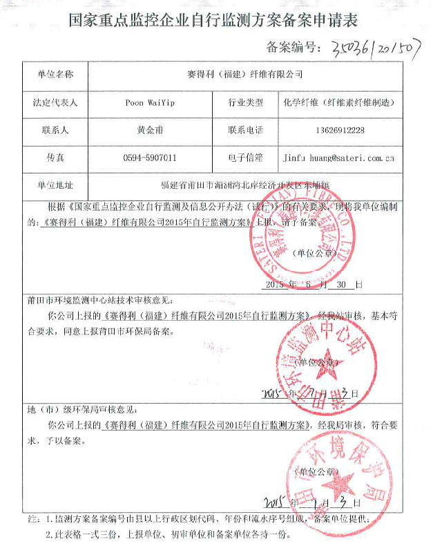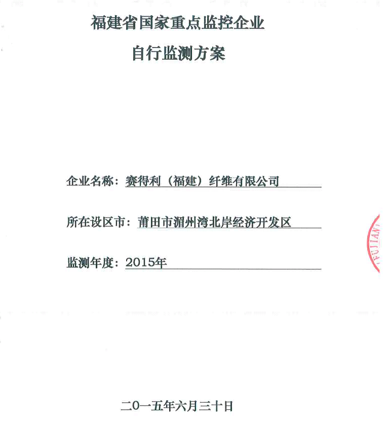 2015年賽得利(福建)纖維有限公司自行監測方案(最新)